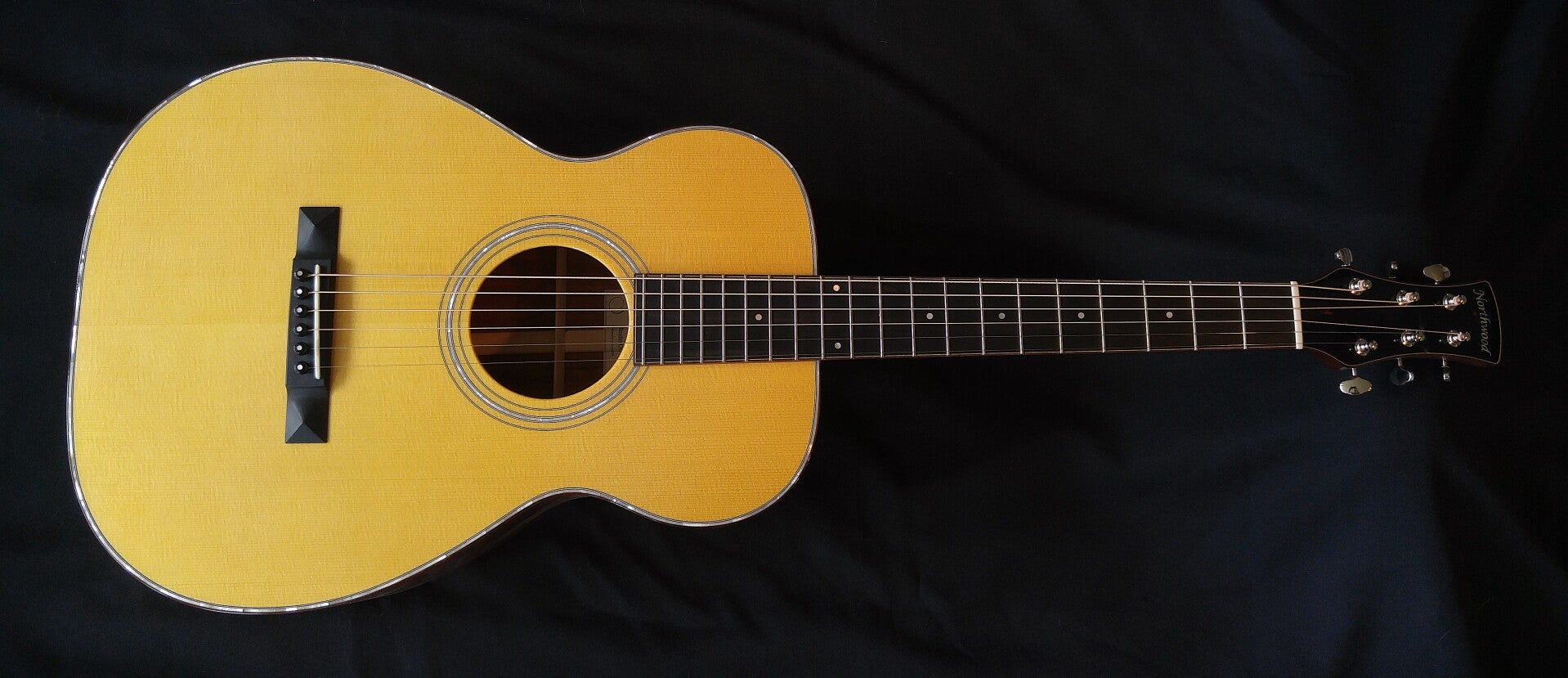 The Northwood Studio 00 is the 12 fret version of the 14 fret 00. Very comfortable to play, the bridge placement closer to the endblock gives this model surprising tone for it's size.